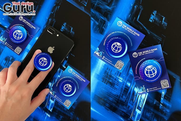 รับทำ GRIPTOK ทรงกลมติดหลังมือถือ แบรนด์"THE WORLD BANK"