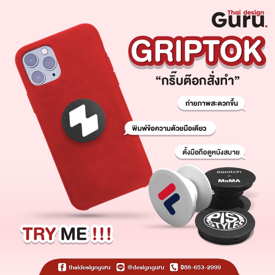 การมี Griptok เก๋ๆ สวยๆ พิมพ์ลายไว้ใช้งาน ก็จะช่วยเอื้ออำนวยความสะดวก นอกจากรับทำ Griptok เป็นของแถมแล้ว ตัวติดมือถือ Griptok น่ารักๆ ยังเป็นไอเท็มสร้างรายได้อีกช่องทางหนึ่งให้กับแบรนด์และหน่วยงานได้เช่นกัน