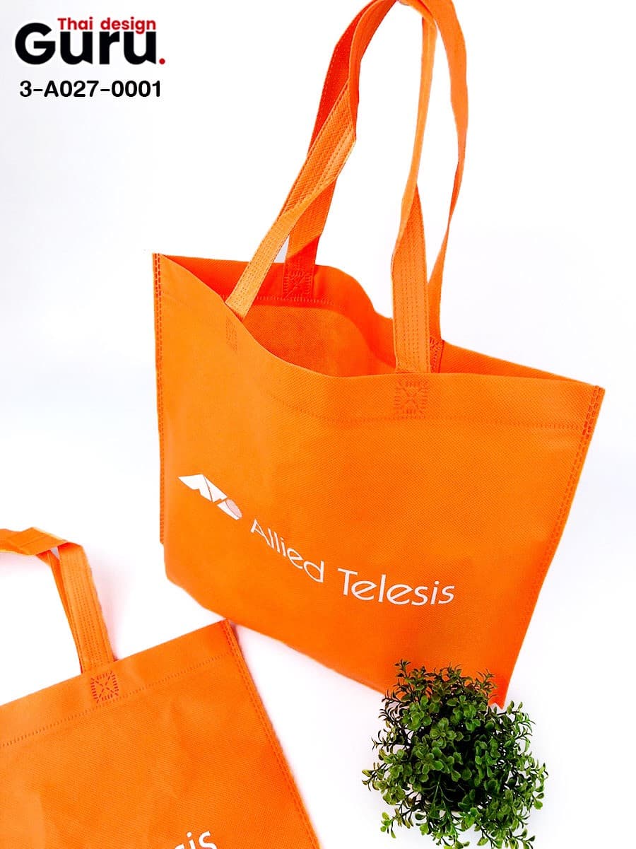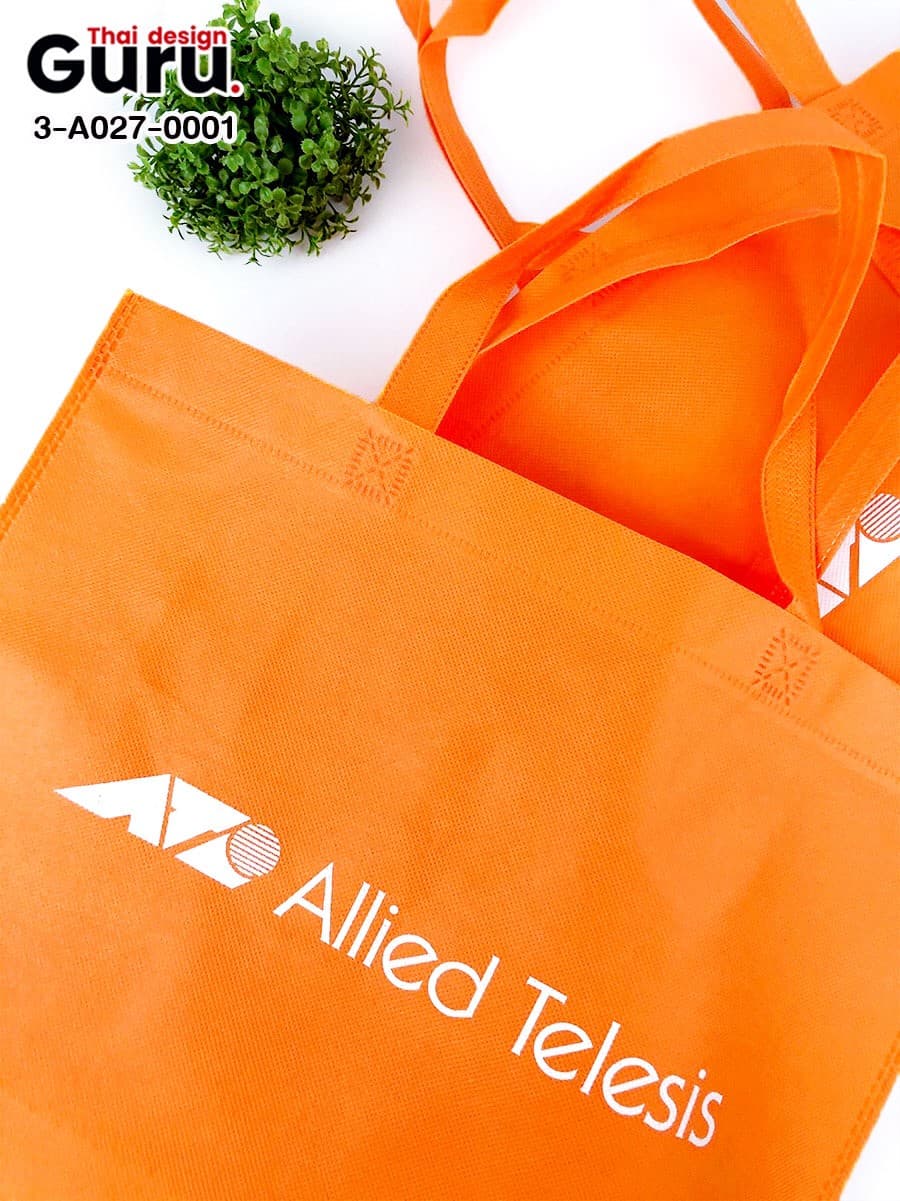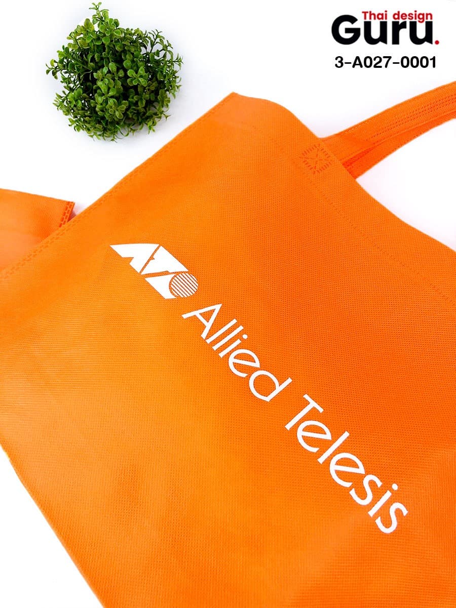 ถุงผ้าแจกพิมพ์สกรีนแบบด่วน ตัวเลือกดีๆ ที่เหมาะกับหน่วยงาน แบรนด์ ที่อยากได้ของแจกพิมพ์แบรนด์ ราคาถูก หรือจะเป็นถุงผ้าใส่สินค้าสำหรับแจกงานอีเวนต์ ผลิตเร็ว งานดี ใช้งานได้จริง กับถุงผ้าสำเร็จพิมพ์โลโก้ เช่น ผลิตถุงผ้าสปันบอนด์ สีส้ม สกรีนโลโก้ allied Telesis