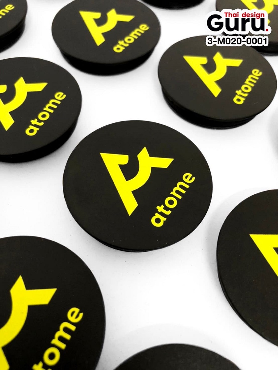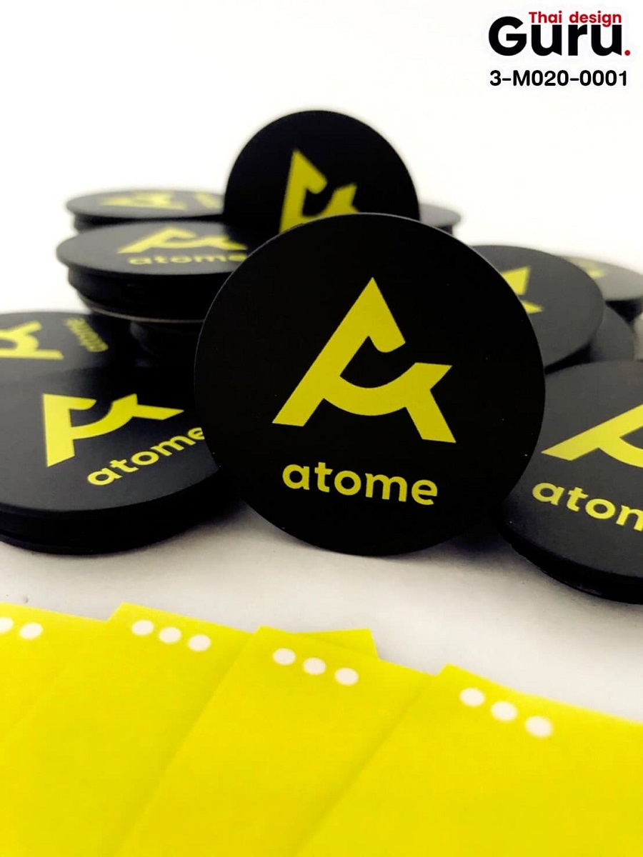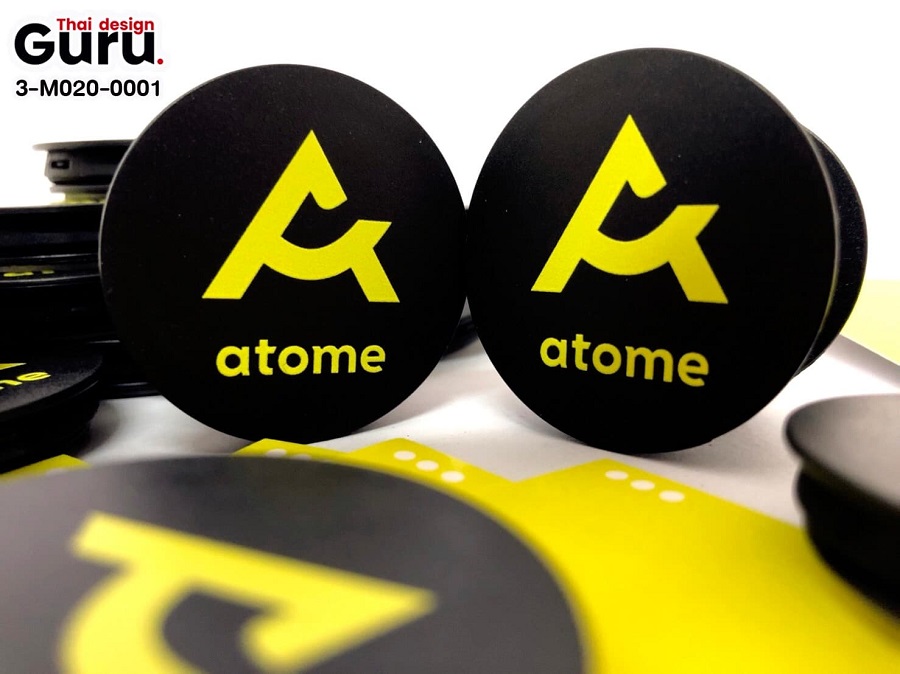 นอกจากนี้การสั่งทำ Griptok พิมพ์โลโก้หน่วยงานเป็นของที่ระลึก ที่มีขั้นต่ำเพียง 100 ชิ้น เรียกได้ว่าของแจกที่ราคาถูกแต่ประโยชน์เยอะ ซึ่งการทำกริ๊บต๊อก พิมพ์โลโก้ของแบรนด์ atome จะมีสีเฉพาะและพิมพ์ได้ไม่จำกัดสี อย่างการผลิตgriptok ติดมือถือของพรีเมี่ยม โลโก้บริษัท atome จะเน้นสีเหลืองนีออนและสีดำ