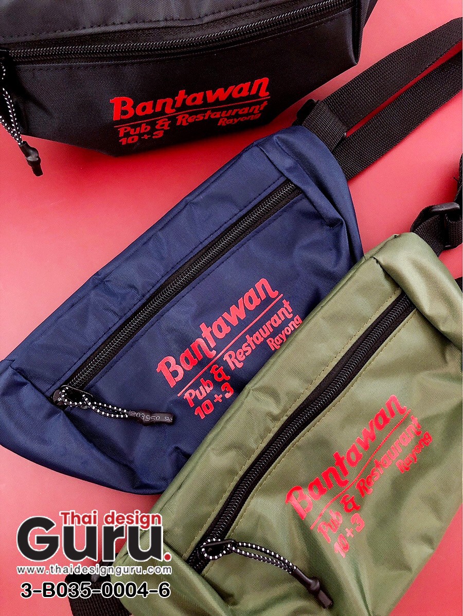 ทางโรงงานผลิตกระเป๋าผ้าก็ขอแนะนำ กระเป๋าคาดอกแฟชั่น ซิปรูด ใช้งานง่าย เช่นเดียวกับผลงานรับทำกระเป๋าคาดอก ผ้ากันน้ำแฟชั่น คละสี สกรีนโลโก้ Bantawan ที่มีด้วยกันถึง 3 สี สีดำ สีกรมและสีเขียวขี้ม้า