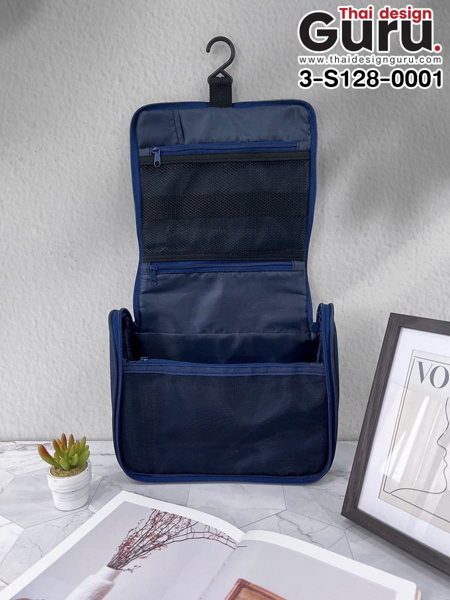 อีกหนึ่งจุดแข็งของกระเป๋าคือการออกแบบฟังก์ชันภายในที่ตอบโจทย์ผู้ใช้จริง ทั้งช่องตาข่าย ช่องซิป และช่องใส่ของขนาดต่าง ๆ ที่จัดวางอย่างลงตัว เปิดใช้งานได้สะดวกด้วยซิปคู่ และยังมีตะขอแขวนติดในตัว ซึ่งเหมาะสำหรับการใช้งานในห้องน้ำ โรงแรม หรือแม้แต่ในออฟฟิศ ช่องด้านหน้ามีความลึกกำลังดี ใช้งานได้จริงโดยไม่เสียทรง กระเป๋าไม่เพียงแต่ใช้งานสะดวก แต่ยังสะท้อนความเป็นมืออาชีพขององค์กรผู้ให้ได้อย่างชัดเจน ทุกองค์ประกอบบนตัวกระเป๋าช่วยเสริมให้แบรนด์ดูมีมูลค่า