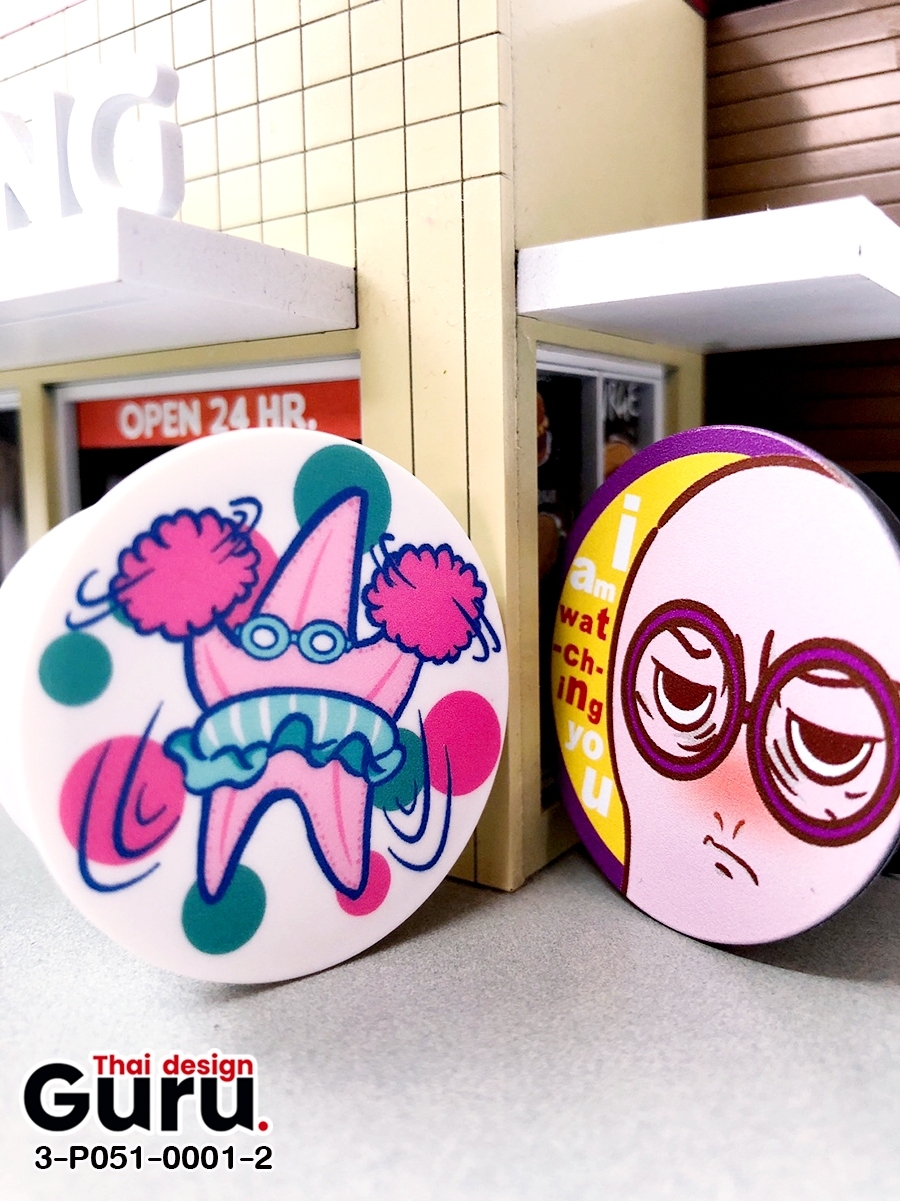 ของพรีเมี่ยมพิมพ์ลายการ์ตูนน่ารักออกแบบเองได้ กับที่ติดหลังมือถือ หรือที่จับมือถือขณะถ่ายรูปเซลฟี่ ไอเท็มดีๆ ที่คนที่รักการแชทมือถือ ใช้งานมือถือบ่อย ไม่ปวดมือ ที่ติดหลังมือถือ Griptok หรือหลายคนเรียก Pop socket แบบกลมมีลักษณะป๊อปอับติดมือถือยืดหดได้ 2 ระดับ