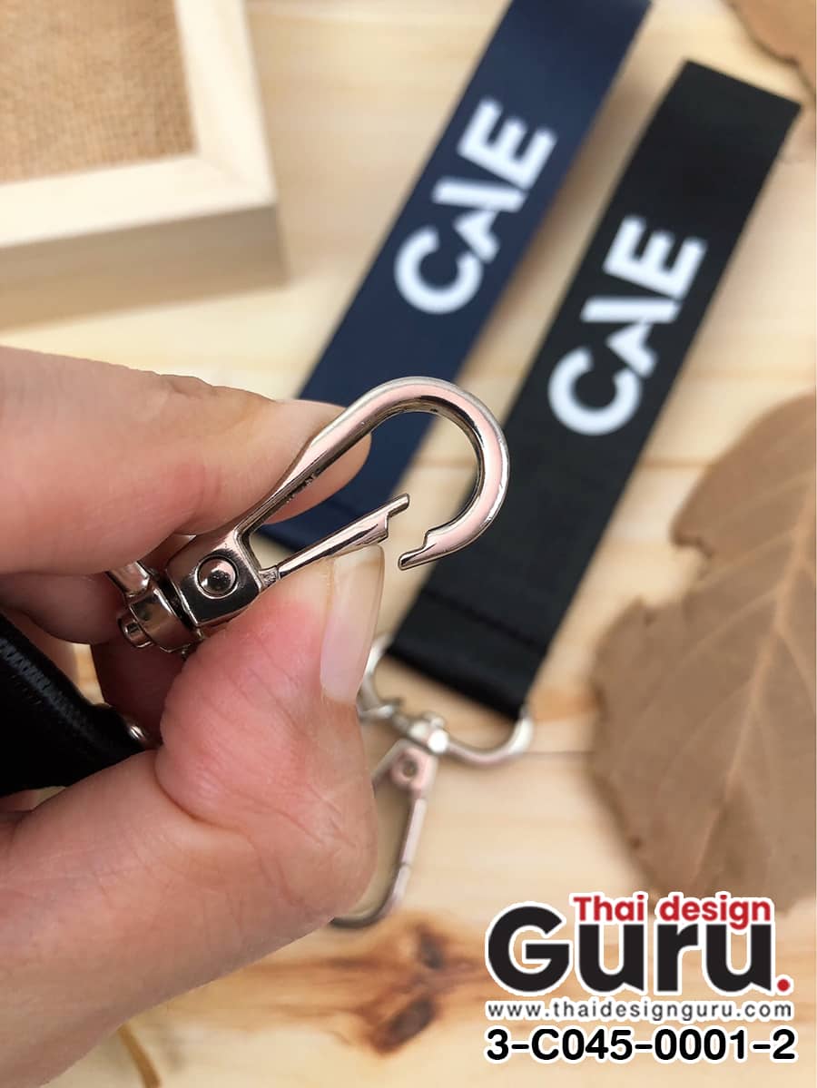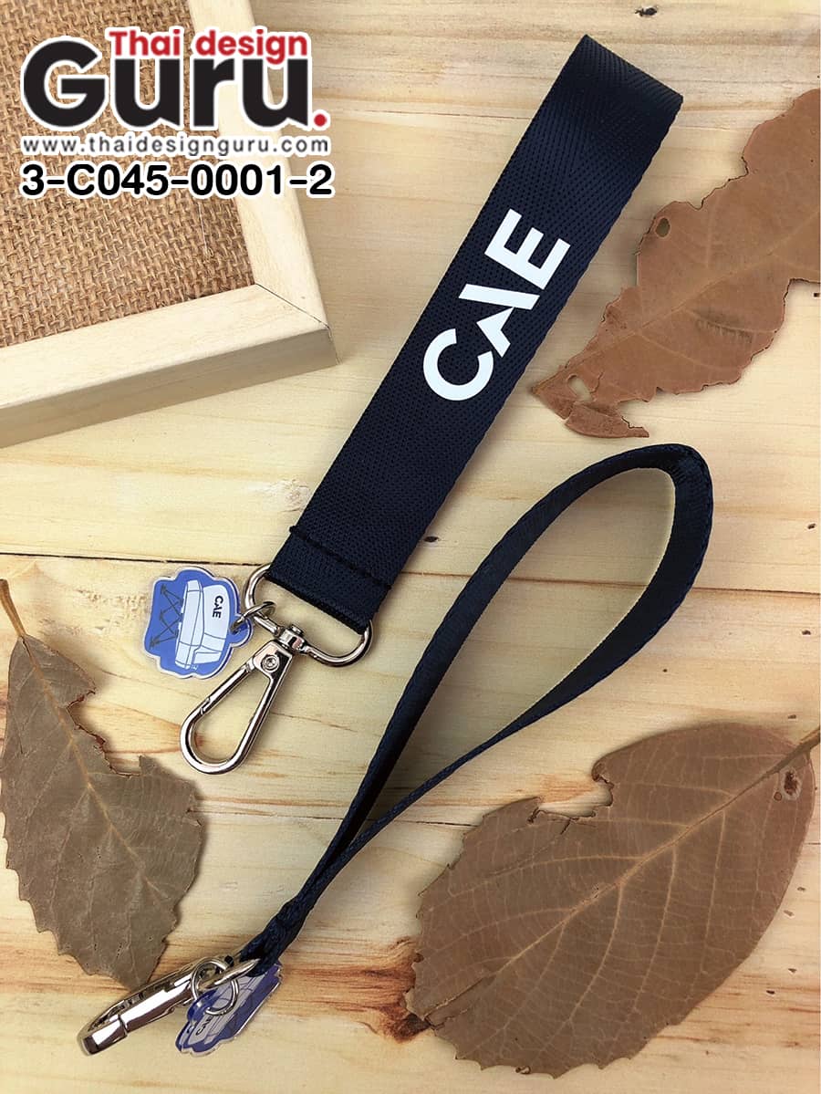 ตัวอย่างการสั่งผลิตพวงกุญแจสายไนล่อน สีดำและสีกรม พิมพ์แบรนด์ CAE ตะขอเกี่ยวก้ามปูสีเงิน พร้อมจี้อะคริลิกพิมพ์ลาย Full Color สำหรับเป็นของพรีเมี่ยมเพื่อสร้างความประทับใจและความน่าจดจำ ช่วยในการประชาสัมพันธ์โปรโมทแบรนด์ได้เป็นอย่างดี