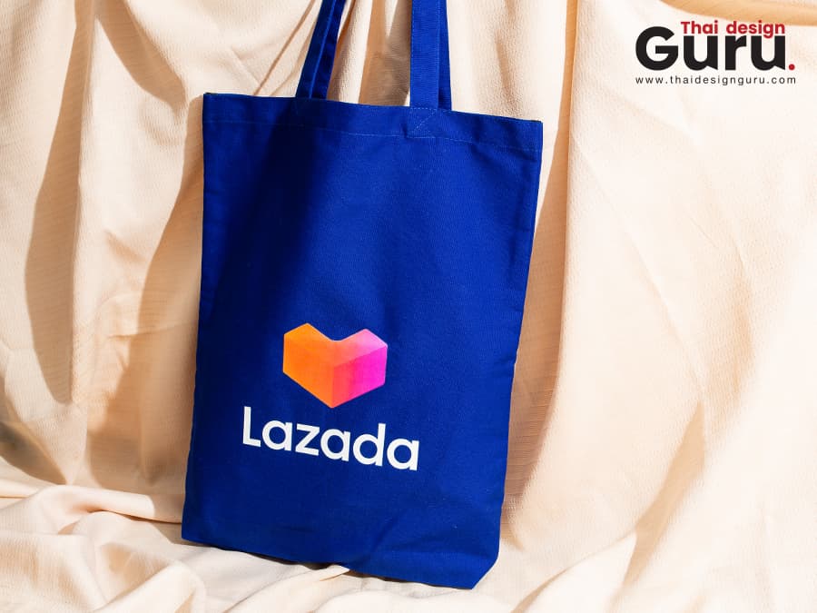 ผลิตกระเป๋าผ้า canvas สะพายข้างทรงสวย สีผ้าสดแจ่มสีน้ำเงิน พิมพ์แบรนด์ Lazada ถุงผ้าพรีเมี่ยมที่เป็นของแถม ของที่ระลึกสุดพิเศษ สำหรับเทศกาลและโปรโมชั่นที่กำลังจะมาถึง รูปแบบกระเป๋าผ้าช้อปปิ้ง tote ที่สกรีนโลโก้ offsetโลโก้ไล่สีได้คมชัด เนื้อผ้าหนาคุณภาพ ในราคาสบายกระเป๋า ราคาถูกเกินคุ้ม