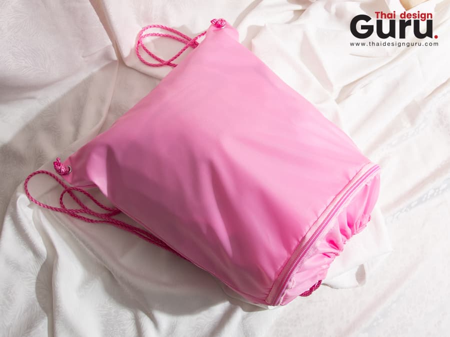 กระเป๋าเป้สายหวานสีชมพูสวยๆ น้ำหนักเบา ทรงยอดฮิตสำหรับถุงผ้าแจกงานวิ่งมาราธอน เป็นกระเป๋าหูรูดอเนกประสงค์ สกรีนโลโก้ พิมพ์ลายได้ หน่วยงานชื่นชอบ เพื่อผลิตถุงผ้าแจกหูรูด มีซิปสะพายหลัง ผ้าร่มกันน้ำ เนื้อหนากว่าท้องตลาด สายชมพูสีเดียวกับกระเป๋าผ้าทำจากเส้นใยโพลีเอ็นเตอร์