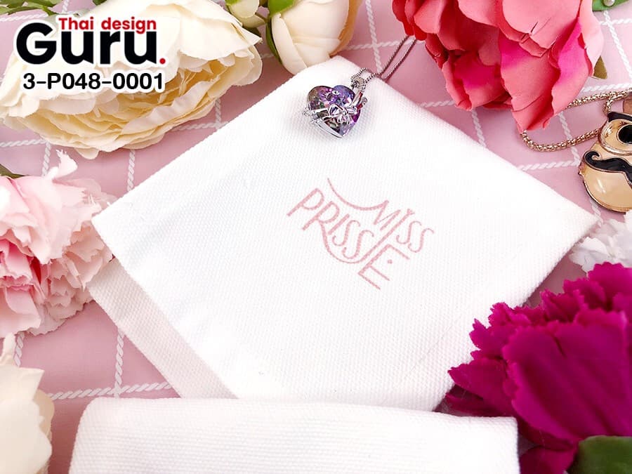 ซองผ้าแคนวาสถุงผ้าใส่เครื่องประดับใบเล็กๆ สกรีนโลโก้ งานพรีเมี่ยมของแบรนด์ Miss Prissie เป็นถุงผ้าแคนวาสแบบซองฝาปิด เหมาะสำหรับใส่เครื่องประดับเช่น ตุ้มหู แหวน สร้อยคอ เป็นต้น ความน่ารักของซองใส่เครื่องประดับแบบผ้า คือ เนื้อผ้าแคนวาสสีขาว ดูเรียบหรู