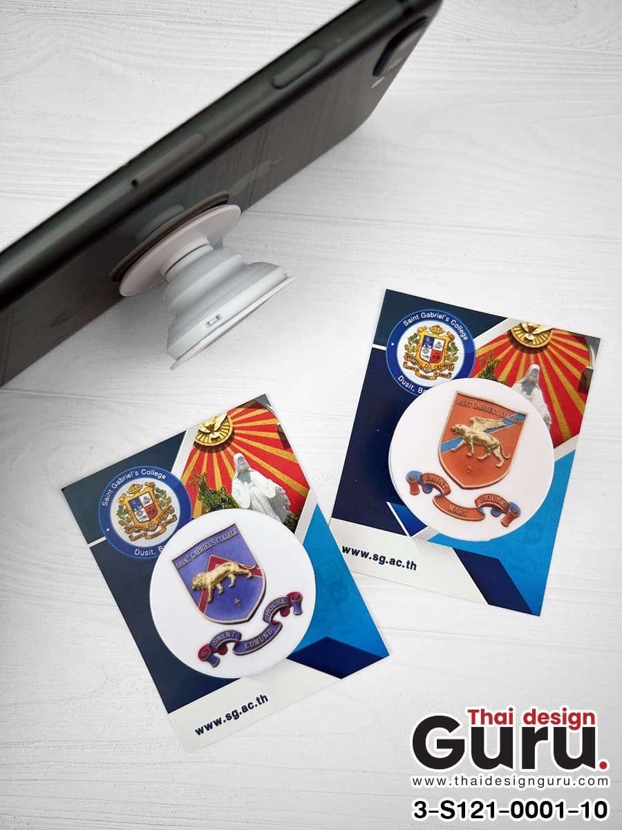งานพิมพ์บน Pop Socket แสดงตราโลโก้โรงเรียนคริสเตียน Saint Gabriel's College ได้อย่างชัดเจน มีการออกแบบให้โดดเด่นด้วยสัญลักษณ์ของแต่ละ House ภายในโรงเรียน โดยใช้สีและรายละเอียดที่แม่นยำเพื่อให้ได้ดีไซน์ที่สวยงามและสมจริง