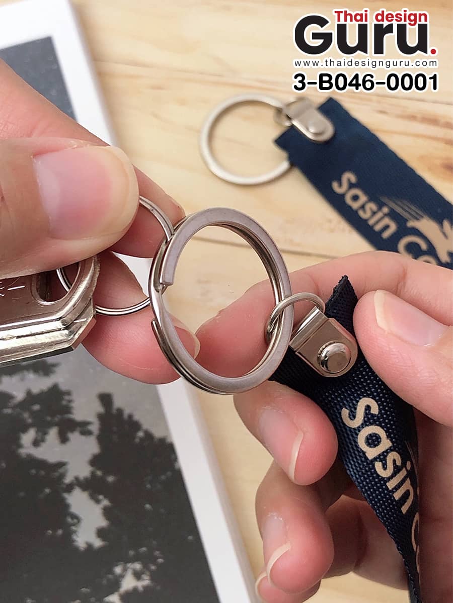 ตัวอย่างพวงกุญแจสายไนล่อน สีกรม พร้อมสกรีนลาย Sasin Connect มีดีไซน์ที่ไม่ซับซ้อน แต่ดูหรูหราด้วยสีกรมท่าและลายสกรีน ที่ชัดเจนสะดุดตา ทำให้ผู้ใช้หรือคนที่พบเห็นสามารถจดจำชื่อแบรนด์ได้ง่ายและรวดเร็ว ทั้งยังทนทานและใช้งานได้ในระยะยาว