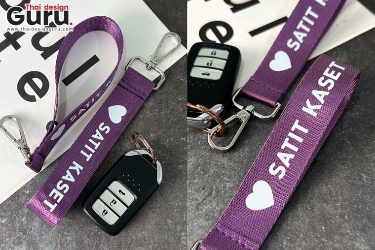พวงกุญแจนี้เป็นสินค้าพรีเมียม โทนสีม่วงเข้มที่ให้ความรู้สึกโดดเด่น สุขุม และมีเอกลักษณ์ เมื่อนำมาจับคู่กับอะไหล่ห่วงสีเงินเงา จึงช่วยให้ตัวสินค้าดูมีความทันสมัย แข็งแรง และมีความเป็นงานโปรโมทแบรนด์ที่ดูดีเกินกว่าพวงกุญแจทั่วไปอย่างชัดเจน จุดเด่นของชิ้นงานนี้คือการสกรีนข้อความ “SATIT KASET” ด้วยสีขาวตัดกับพื้นสีม่วงเข้มอย่างชัดเจน