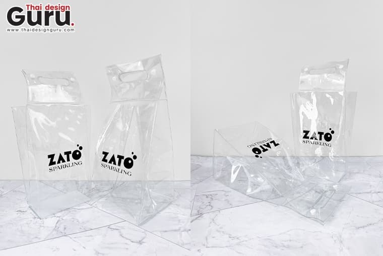ซองพลาสติกใสหูหิ้วแบบตั้งทรง ที่สกรีนโลโก้ “ZATO SPARKLING” ถูกออกแบบมาเพื่อเน้นงานโปรโมทแบรนด์เป็นหลัก ด้วยวัสดุ PVC ใสคุณภาพดี มีความแข็งแรงพอเหมาะ รูปทรงตั้งตรงคมชัด และสามารถมองเห็นสินค้าในซองได้อย่างชัดเจน ช่วยสื่อสารจุดเด่นและภาพลักษณ์ของสินค้าได้ทันทีที่มองเห็น